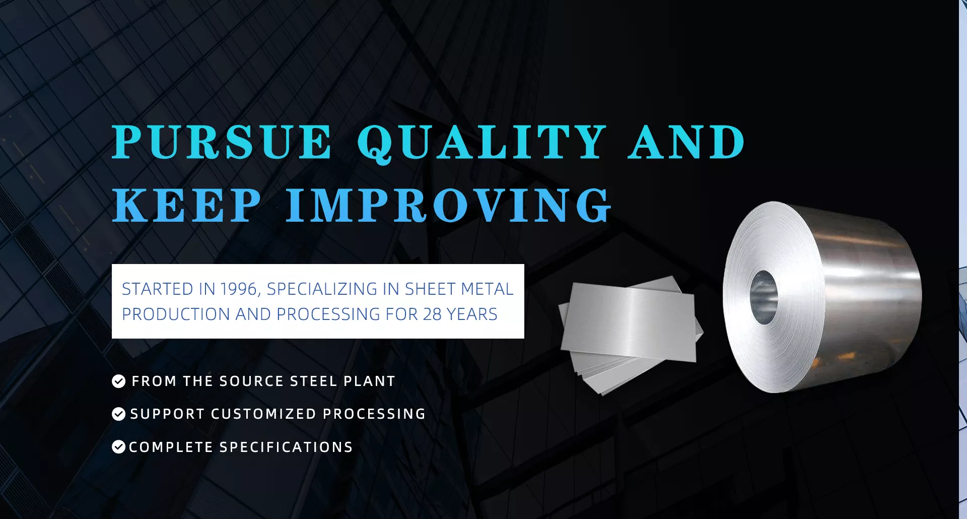 Zhengzhou Baixin Materials Co., Ltd. was founded in 1996. Our company is a comprehensive material distribution enterprise mainly engaged in metal plate processing and trade. We are engaged in the processing and distribution of cold-rolled plates, galvanized plates, aluminum-zinc plates, zinc-aluminum-magnesium plates, pickled plates, stainless steel plates, hot-rolled plates, color-coated plates, stainless steel plates, hot-rolled plates and many other plates all year round. We have long-term cooperation with large and medium-sized steel mills such as Handan Iron and Steel Co., HanBao Iron and Steel Co., Jiu Iron and Steel Co. , Anshan Iron and Steel Co. , Nippon Steel Co. , and more highly experienced cooperation partners. We have multiple sets of advanced production equipment, providing customers with high-quality raw materials, fine processing, and fast delivery to meet customers' needs for a variety of plate specifications with high efficiency and high quality.